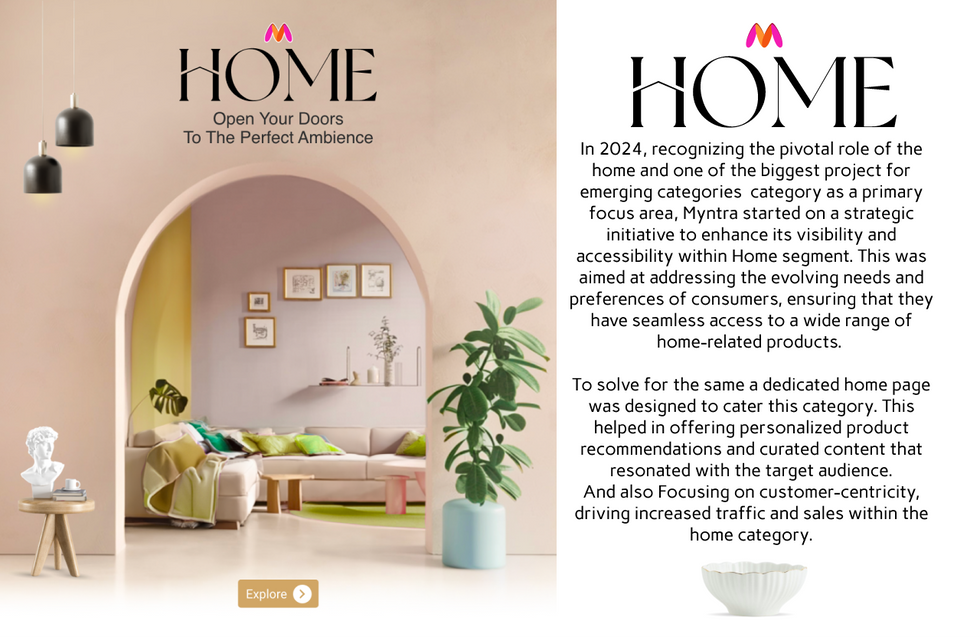 Home category is one of the key emerging charter is given a dedicated home page. This project was to design the home category (home page) on Myntra mobile app